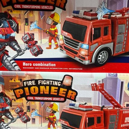 Le jouet se transforme entre un camion de pompier et un robot. Le produit est présenté comme une « Hero combination »