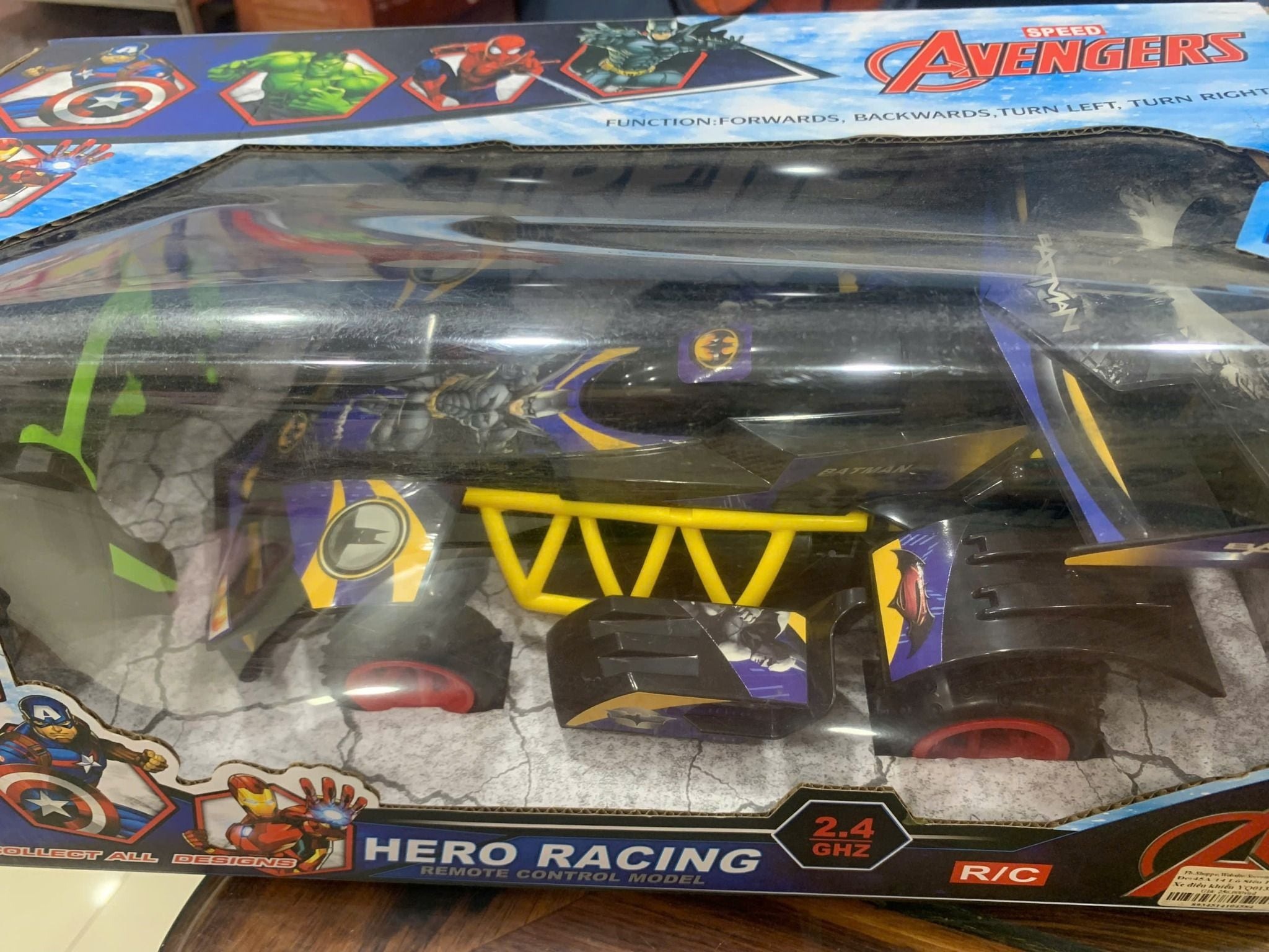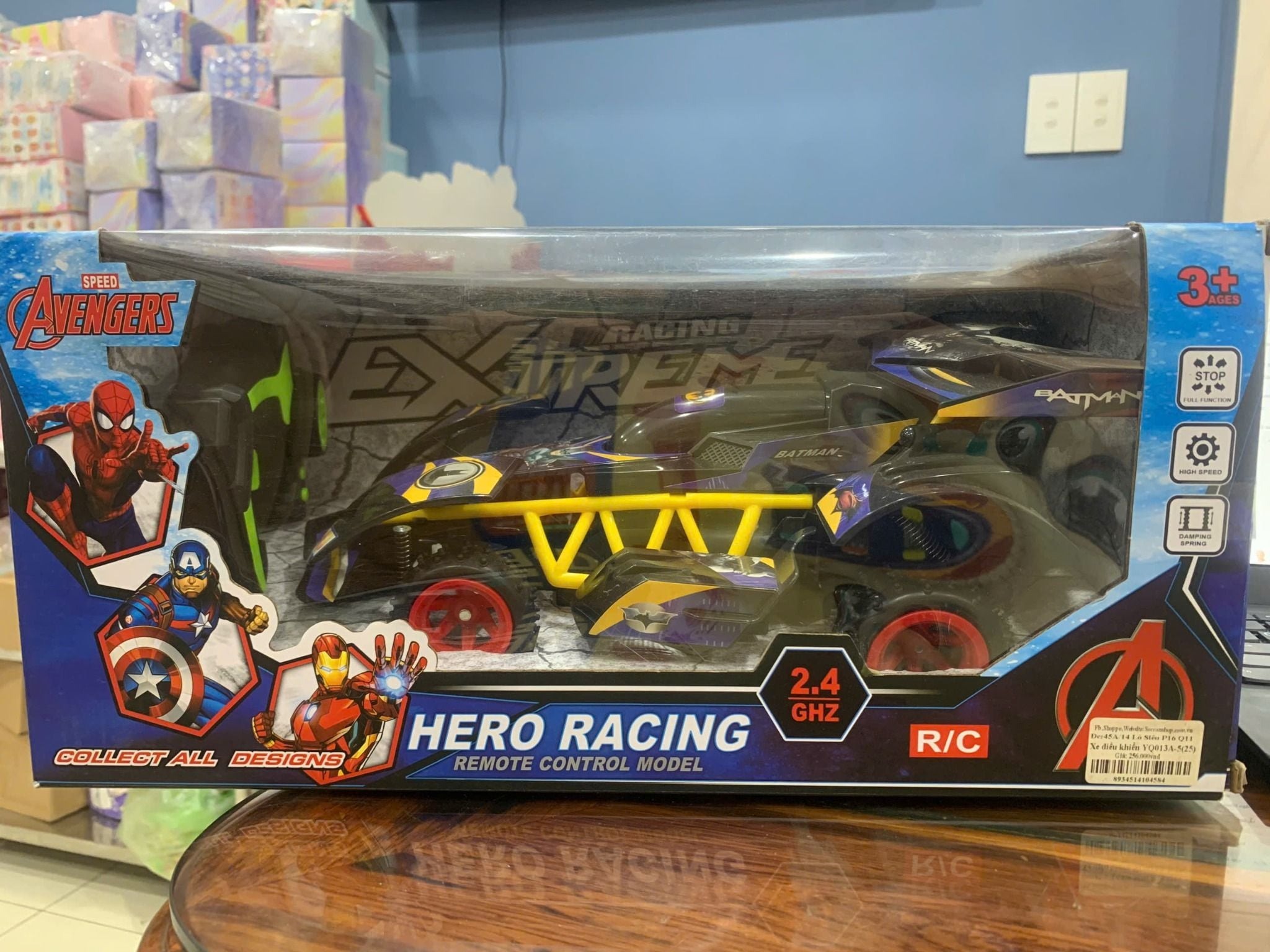 Il s’agit d’une voiture télécommandée Hero Racing Avengers sous licence Marvel. Ce jouet, qui présente les personnages de Captain America et Spider-Man, est un véhicule tout-terrain conçu pour des cascades, notamment des rotations à 360 degrés et des retournements à 180 degrés.