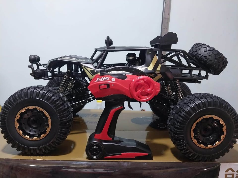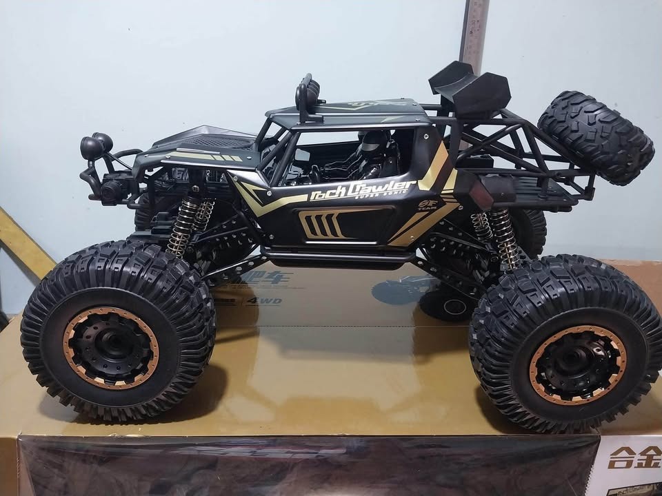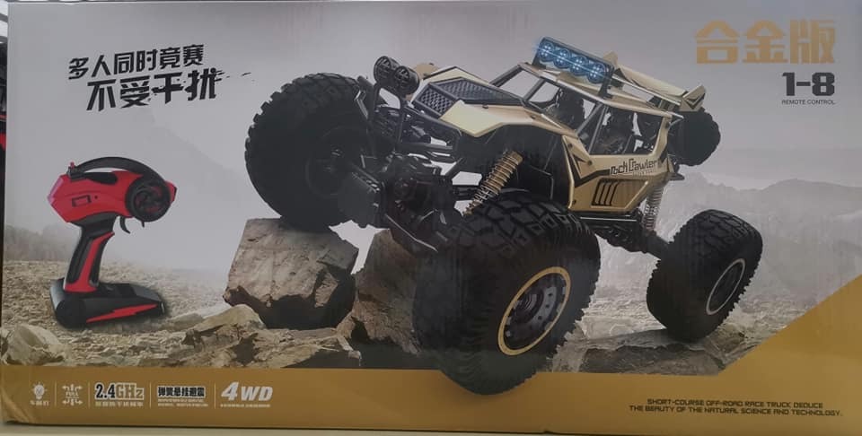 Grande voiture télécommandée RC Rock Crawler à l’échelle 1:8 avec 4 roues motrices. Grâce à ses pneus en caoutchouc et à sa suspension à ressorts, il peut affronter n’importe quelle surface. Équipé d’un éclairage LED. Le pistolet télécommandé permet un contrôle facile. Dimensions : 51x30x31cm.